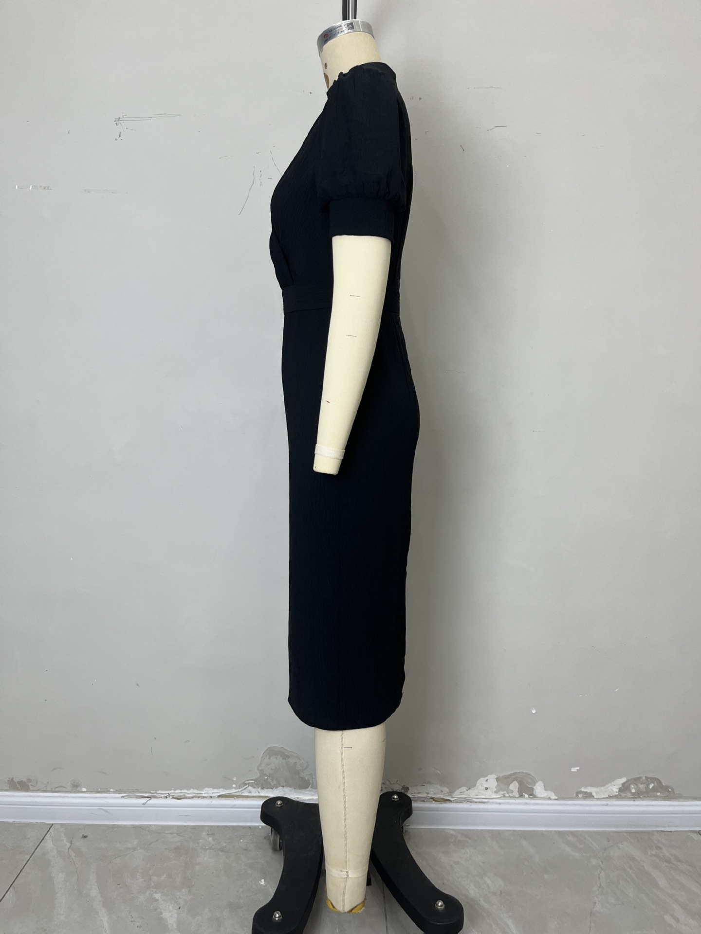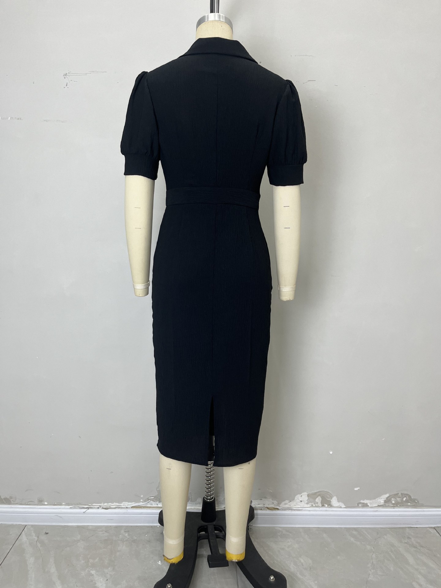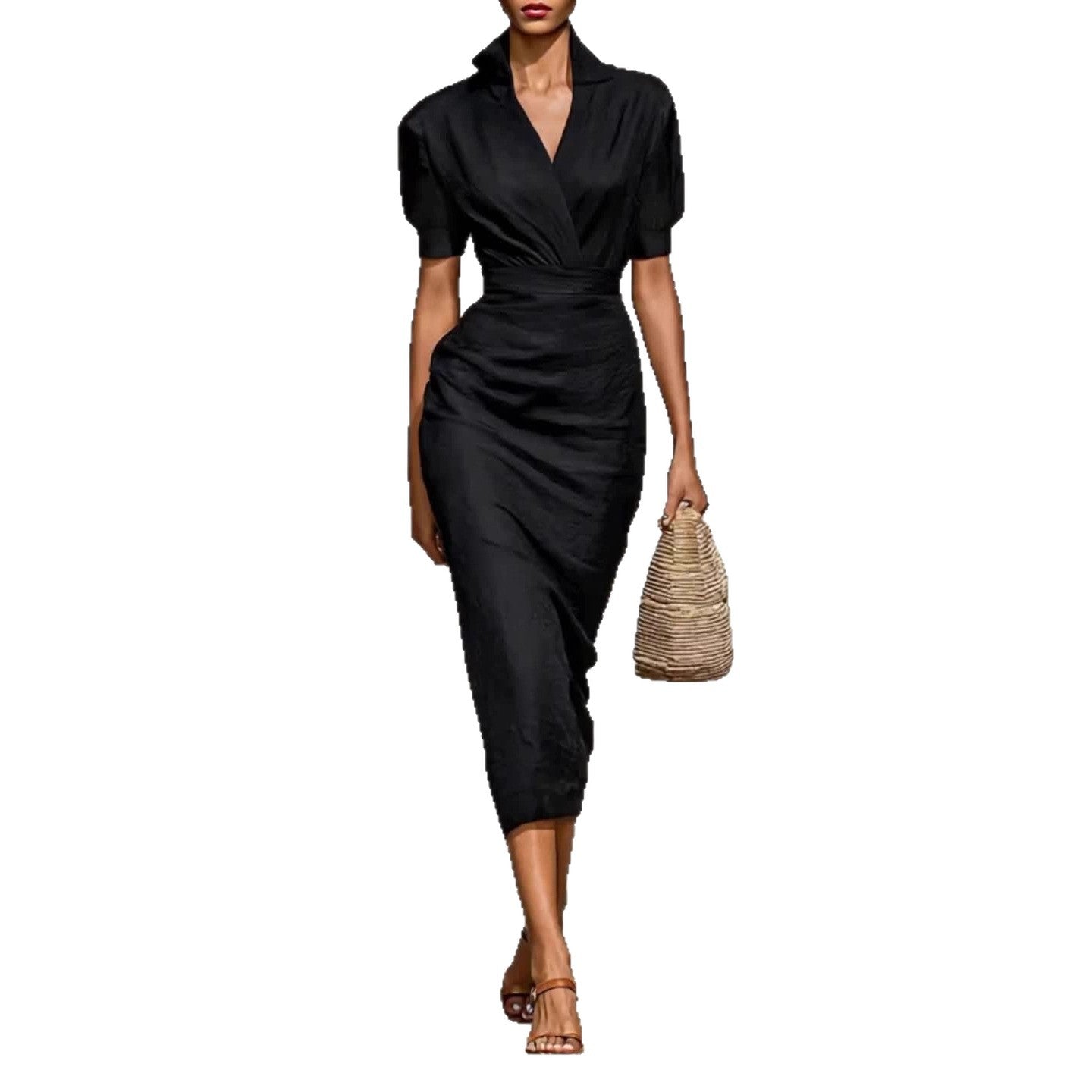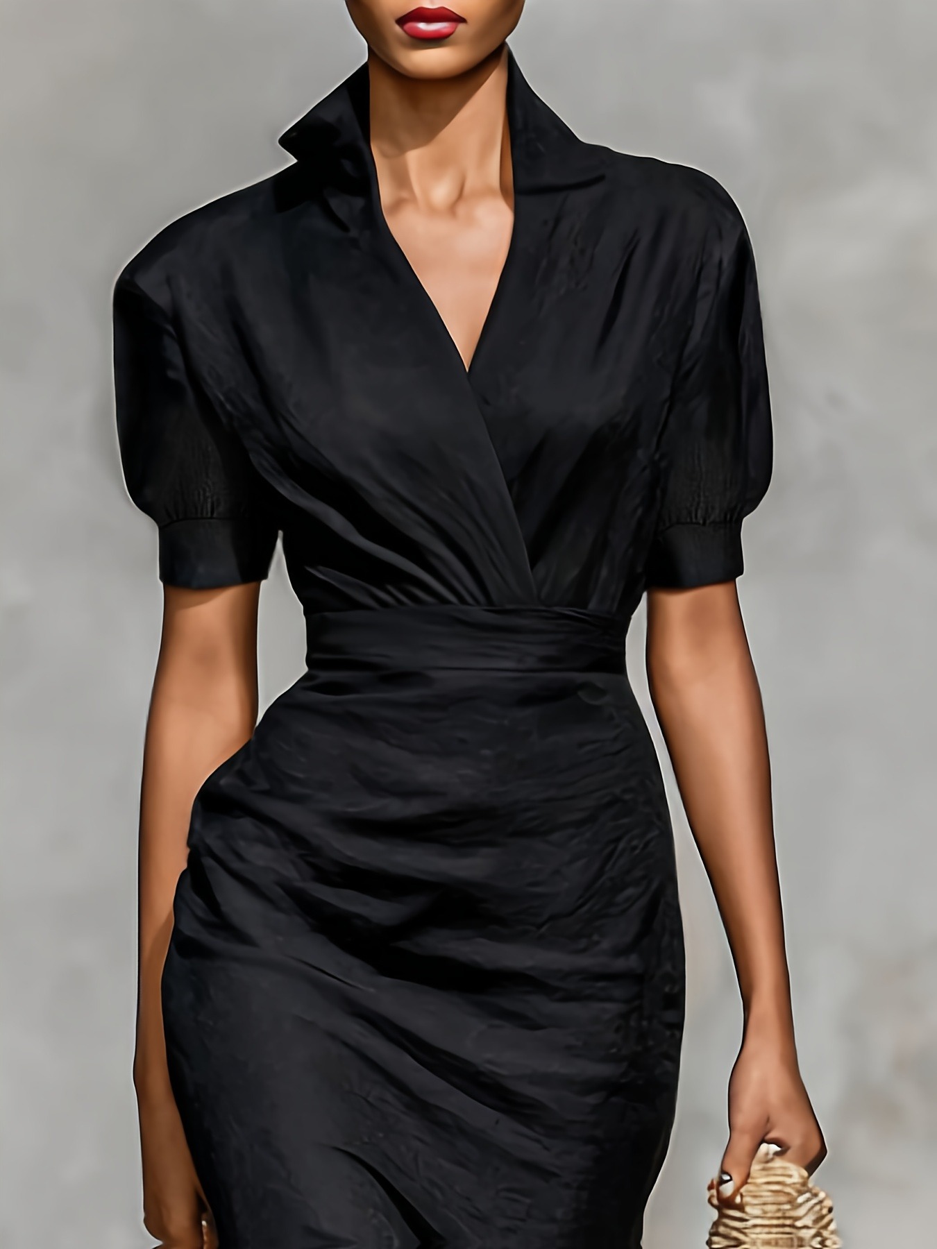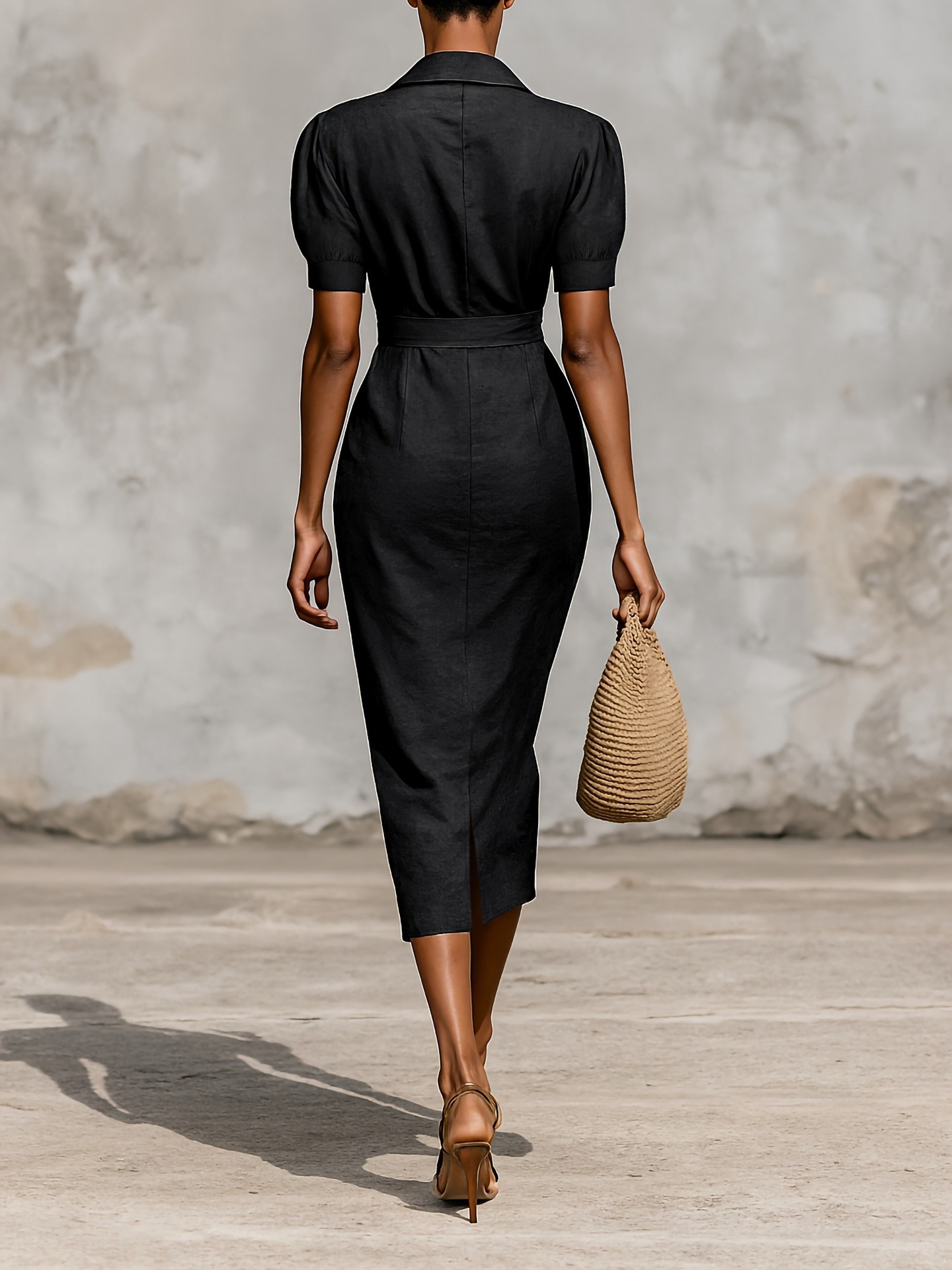 Elegant Solid-color Short-sleeved Belted A-line Dress In A Classic French Style