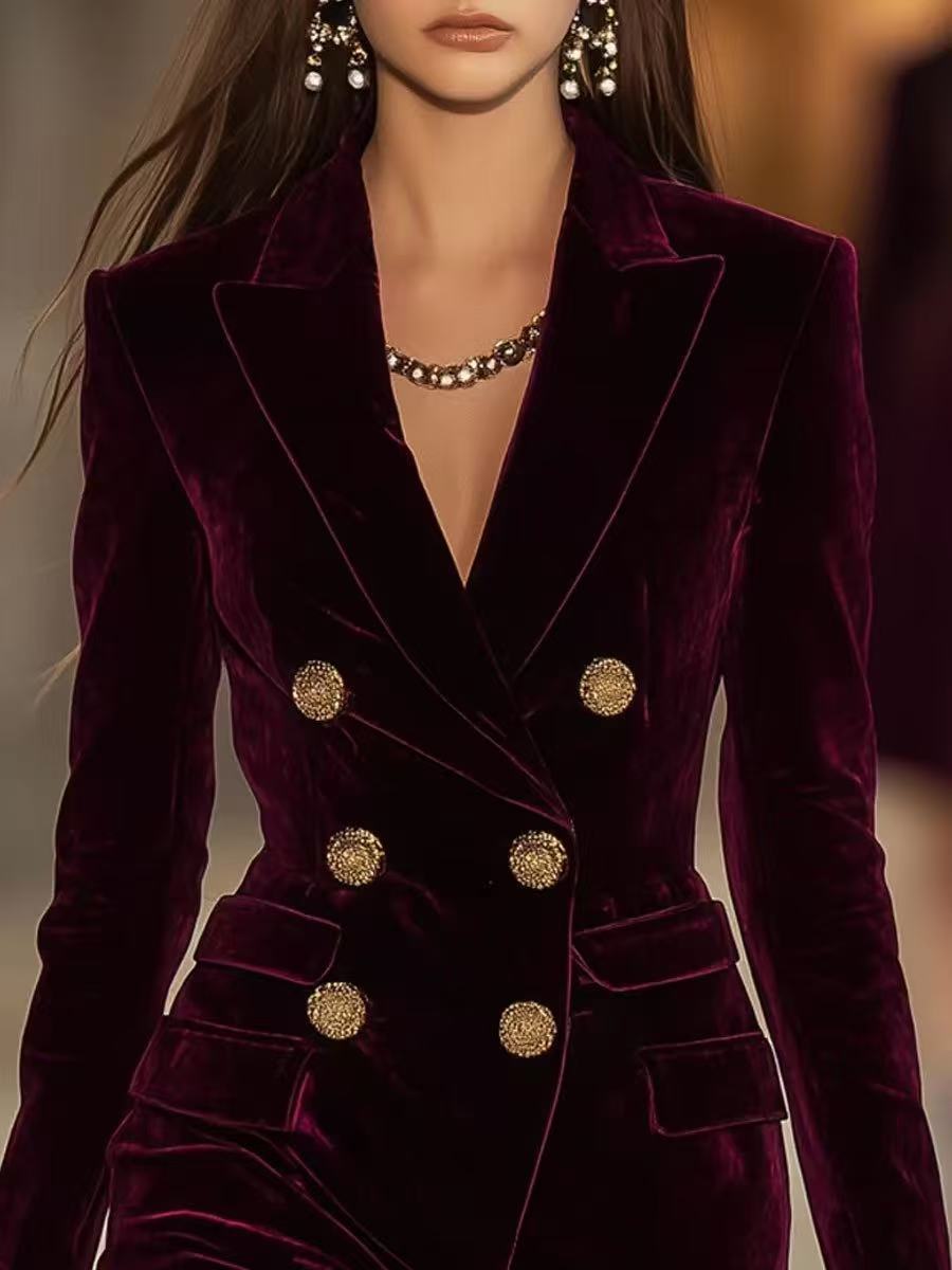 Solid-color Textured Long-sleeve Elegant French-style Dress