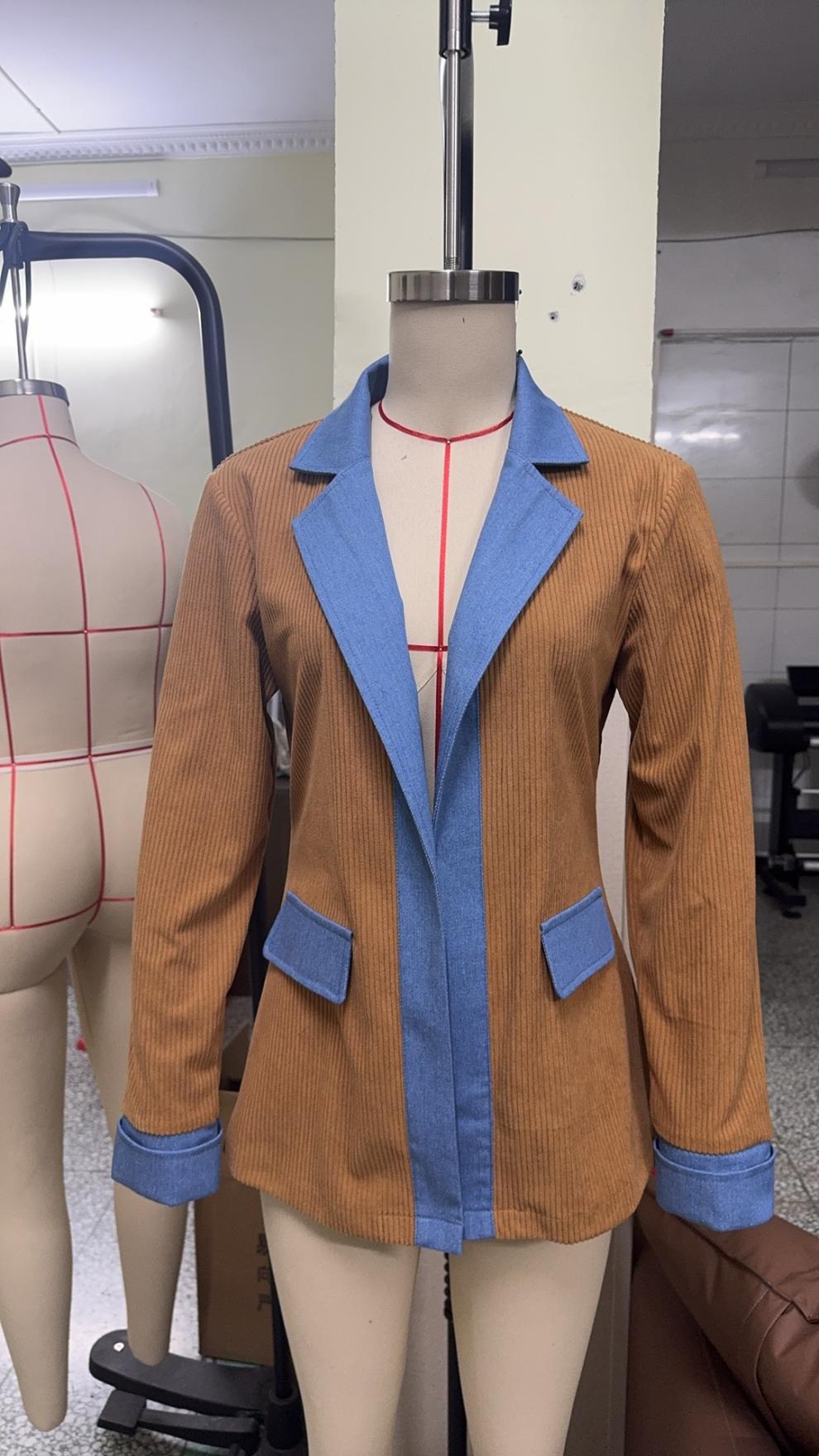 Womens Fashion Slim-fit Long-sleeve Patchwork Jacket
