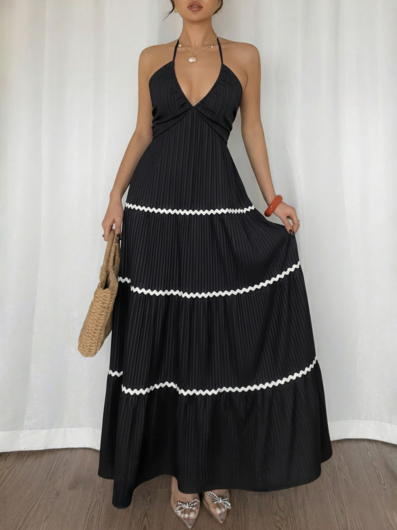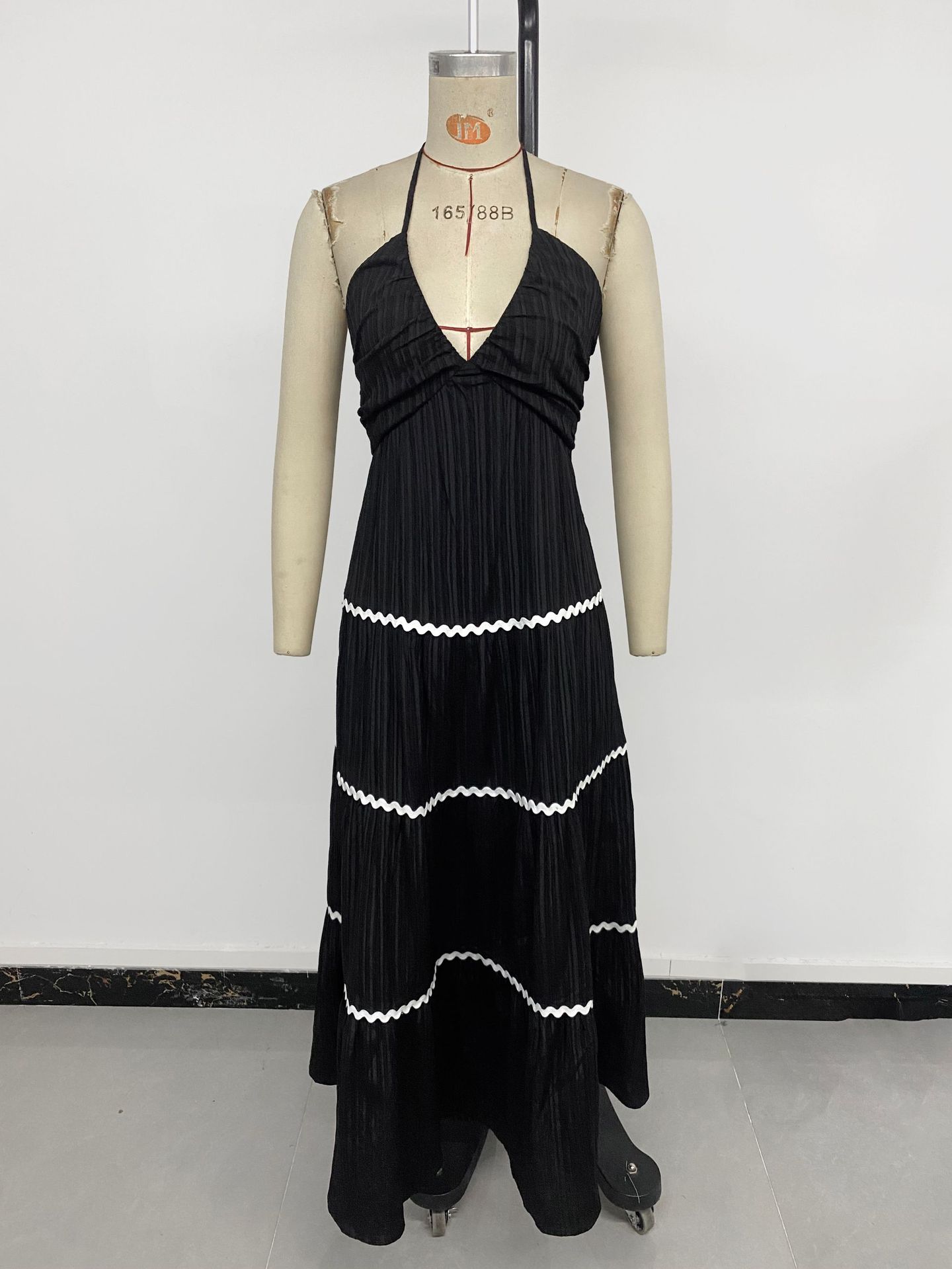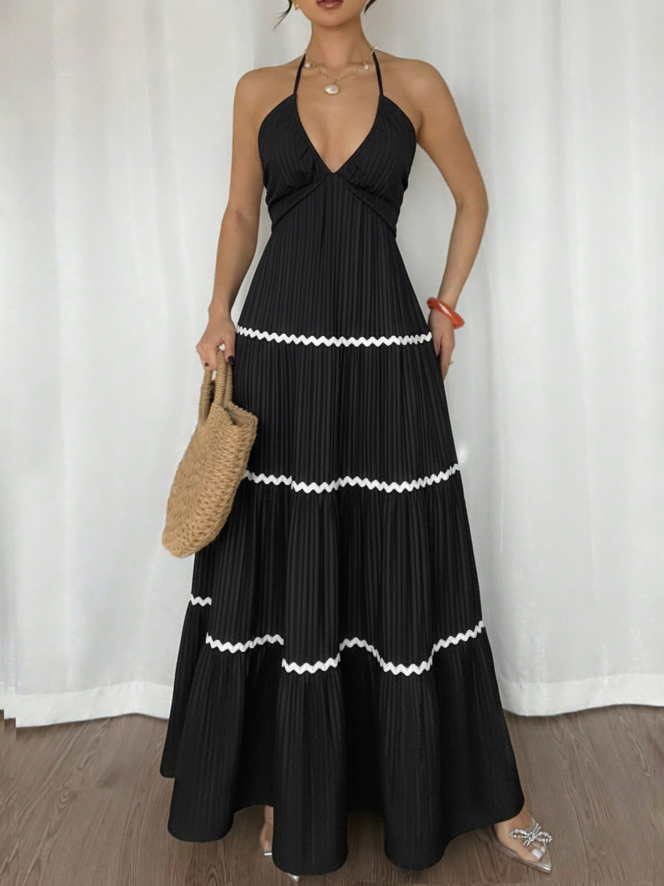 Womens Sleeveless V-Neck Halter Maxi Dress