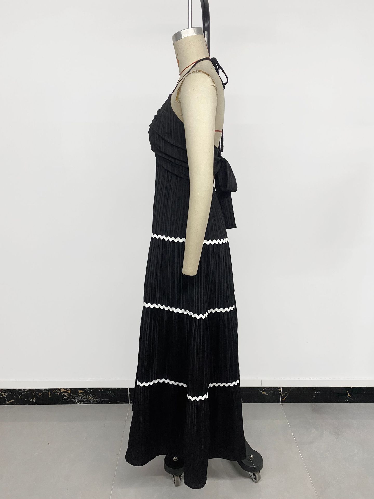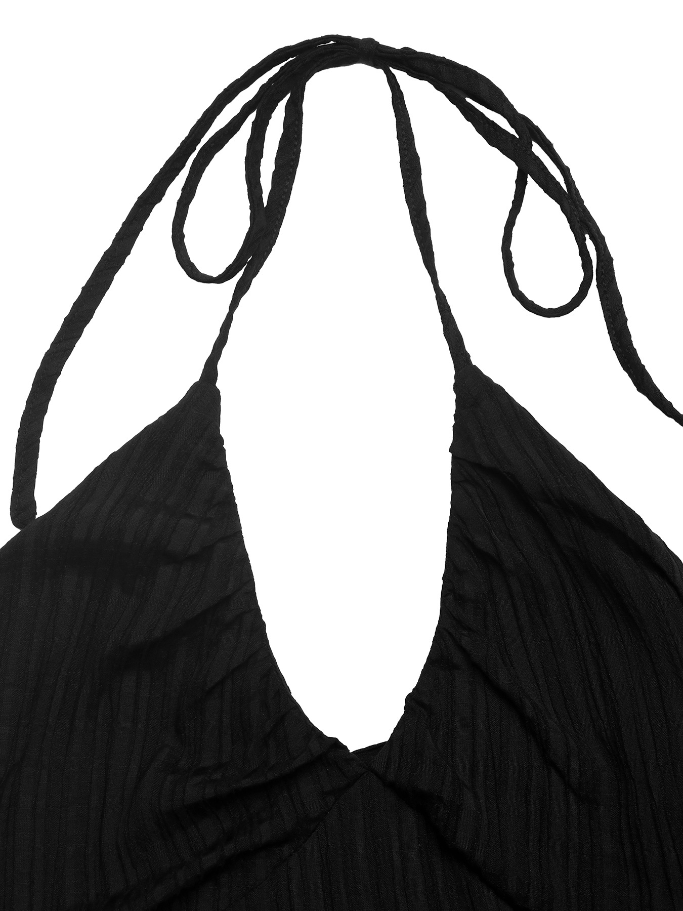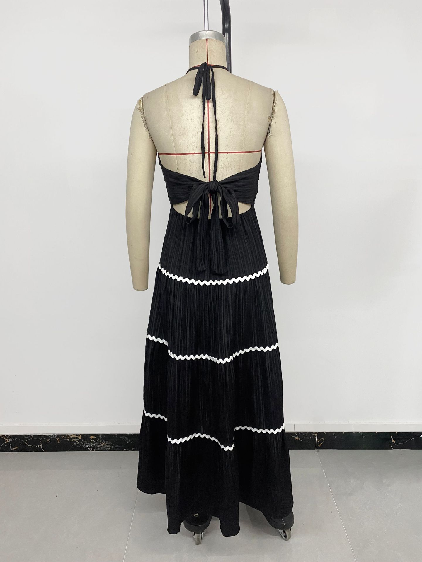 Womens Sleeveless V-Neck Halter Maxi Dress